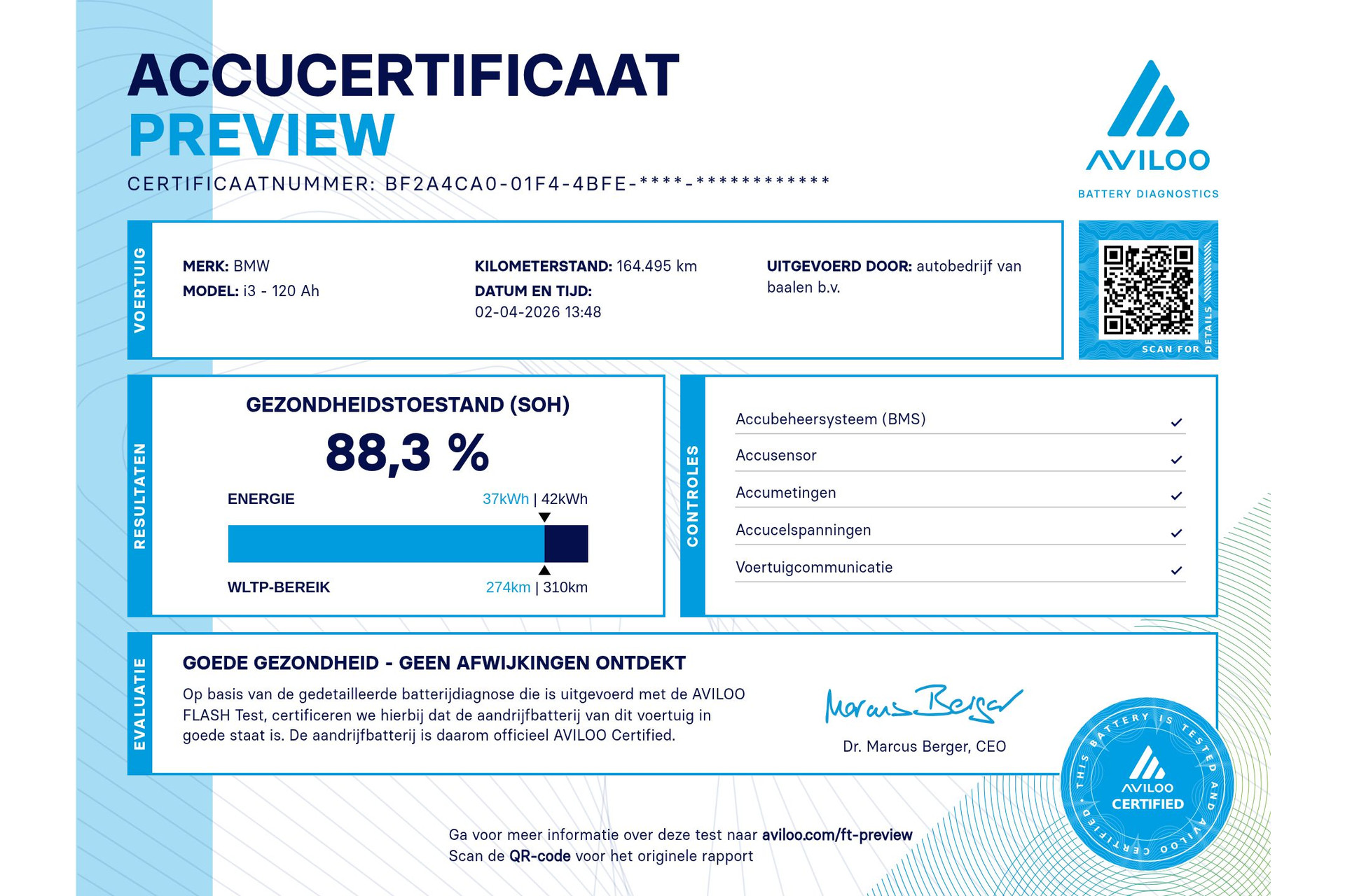 Modelreeks: nov. 2018 - jun. 2022; Modelcode: I01; Koppel: 250 Nm; Actieradius: 359 km (293 km elektrisch); Gemiddeld elektriciteitsverbruik: 159 kWh/100km; Aantal eigenaren: 2; Fabrikant: Autobedrijf van Baalen B.V. Baron van Nagellstraat 53 3781AP VOORTHUIZEN, NL 06 - 33 44 88 55 http://www.autobedrijfvanbaalen.nl verkoop@autobedrijfvanbaalen.nl. Bijzonderheden: Autobedrijf van Baalen biedt u deze prachtige BMW I3 BASIS 42KWh SOh 88.3% aan met alle juiste opties! Deze auto is een origineel NEDERLANDS geleverd en is rechtstreeks afkomstig van de 1-ste eigenaar (overgenomen naar prive) en heeft slechts 166.000 km gelopen. Zeer complete uitvoering met o.a: PANO-DAK, SFEER VERLICHTING, GROOT NAVIGATIE, ACHTERUITRIJ CAMERA, HALF LEDEREN SPORT INTERIEUR, VERWARMBARE VOORSTOELEN, CRUISE CONTROLE, SPORTSTOELEN, PARKEERSENSOREN ACHTER, CLIMATE CONTROLE, BLUETOOTH, DOORLOCK, ELEK. RAMEN, ELEK. SPIEGELS + INKLAPBAAR, En nog veel meer.... Autobedrijf van Baalen meer dan 70 jaar auto-ervaring!! Bedrijfsinformatie: AUTOBEDRIJF VAN BAALEN. BARON VAN NAGELLSTRAAT 53. 3781 AP VOORTHUIZEN. VERKOOP@AUTOBEDRIJFVANBAALEN.NL. **ALLEEN OP AFSPRAAK GEOPEND** WHATSAPP 06-33448855 +316-33448855. Verkoopprijs is rijklaar; Inclusief 3 maanden garantie, afleverinspectie, geldige APK en tenaamstelling. Wilt u meer zekerheid en garantie dan bieden wij u graag een uitgebreider afleverpakket aan.