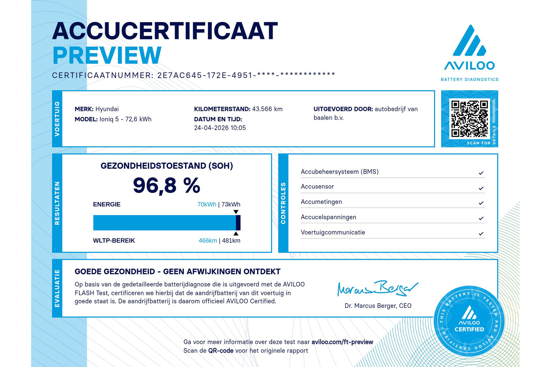 Modelreeks: mei 2021 - jun. 2024; Koppel: 350 Nm; Actieradius: 481 km; Gemiddeld elektriciteitsverbruik: 168 kWh/100km; Fabrikant: Autobedrijf van Baalen B.V. Baron van Nagellstraat 53 3781AP VOORTHUIZEN, NL 06 - 33 44 88 55 http://www.autobedrijfvanbaalen.nl verkoop@autobedrijfvanbaalen.nl. Bijzonderheden: Autobedrijf van Baalen biedt u deze prachtige HYUNDAI IONIQ 5 CONNECT 73KWh SOh 96,8% aan met alle juiste opties! Deze auto is een origineel DUITS geleverd en is rechtstreeks afkomstig van de 1-ste eigenaar en heeft slechts 43.000 km gelopen. Zeer complete uitvoering met o.a: VERWARMBAAR STUURWIEL, SFEER VERLICHTING, APPLE CARPLAY, NAVIGATIE, DODE HOEK ASSISTENT, HALF LEDEREN SPORT INTERIEUR, VERWARMBARE VOORSTOELEN, ELEK. ACHTERKLEP, CHROME LINE, SPORTSTOELEN, PARKEERSENSOREN VOOR & ACHTER, CLIMATE CONTROLE, BLUETOOTH, DOORLOCK, ELEK. VERSTELBARE VOORSTOELEN, ELEK. RAMEN, ELEK. SPIEGELS + INKLAPBAAR, AFNEEMBARE TREKHAAK, En nog veel meer.... Autobedrijf van Baalen meer dan 70 jaar auto-ervaring!! Bedrijfsinformatie: AUTOBEDRIJF VAN BAALEN. BARON VAN NAGELLSTRAAT 53. 3781 AP VOORTHUIZEN. VERKOOP@AUTOBEDRIJFVANBAALEN.NL. **ALLEEN OP AFSPRAAK GEOPEND** WHATSAPP 06-33448855 +316-33448855. Verkoopprijs is rijklaar; Inclusief 3 maanden garantie, afleverinspectie, geldige APK en tenaamstelling. Wilt u meer zekerheid en garantie dan bieden wij u graag een uitgebreider afleverpakket aan.